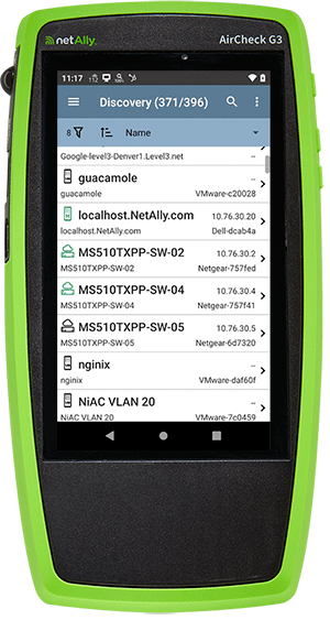 The AirCheck G3 correlates the discovery results from the Wi-Fi networks and breaks the layer 2 visibility ceiling. AirCheck G3 makes it easy to discover the actual identity of a Wi-Fi device by showing its name and IP address while most other Wi-Fi tools only show the MAC address.