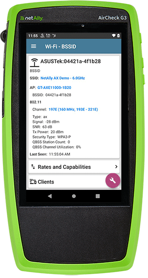 With real-time visibility into essential Wi-Fi parameters (including MLO), AirCheck G3 is ideal for validating the deployment of 802.11be access points and assessing client support.