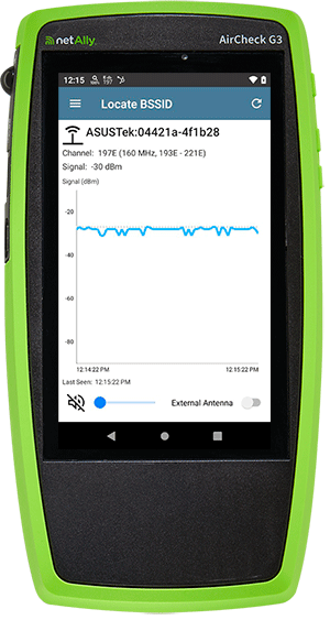 Using the optional NXT-2000 Portable Spectrum Analyzer, AirCheck G3 Pro offers a view of RF interference in the 2.4, 5, and 6 GHz bands and its impact on the wireless network’s overall performance. Users of AirMagnet® Spectrum XT (now obsolete) will find the combination of spectrum visibility in a handheld instrument with in-depth Wi-Fi analytics an ideal replacement.