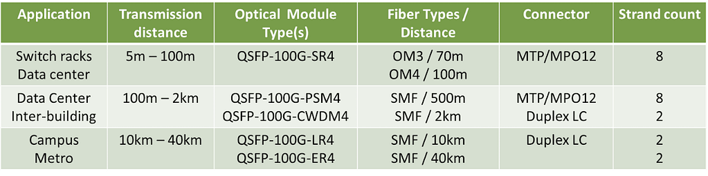 The variety of QSFP28 options exists because 100G Ethernet serves many different applications, each with specific requirements for distance, fiber type, and cost.