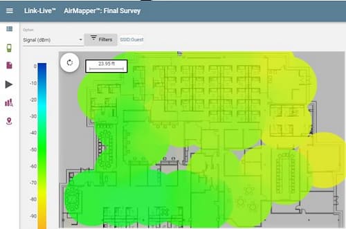 The AirMapper Site Survey application enables you to perform a Wi-Fi survey of an indoor or outdoor location and upload it to Link-Live. From here, you can view heatmaps and Wi-Fi measurements for each data collection point. The Signal heatmap is available to all users, however, some features are only available to units with a valid AllyCare support contract.