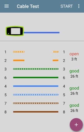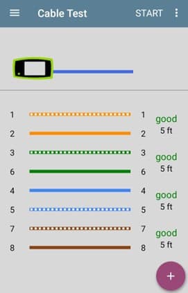 GOOD: If the LinkRunner AT-3000 or the LinkRunner AT-4000 completes testing and shows the cable pairs and their length along with green “Good” text, then pin-to-pin wiring matched the expected wiremap configuration from the TIA/EIA‑568 standard.