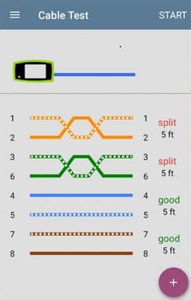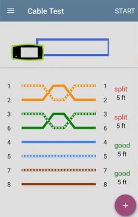 SPLIT – A split result is displayed whenever the test detects that two wires in a pair were not twisted together for noise immunity for the length of the cable. Due to the nature of split pairs and the detection technique used, the reported length of the pair that is split may not be accurate.