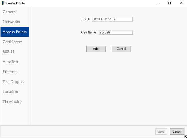 3. Enter the BSSID (MAC Address of AP) and the Alias Name. For Example: