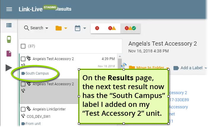 If you are not familiar with using Labels in Link-Live yet, please refer to the the Link-Live Video Series (available from the left-side menu under Support in Link-Live) or the article on Organizing Test Results for more information.