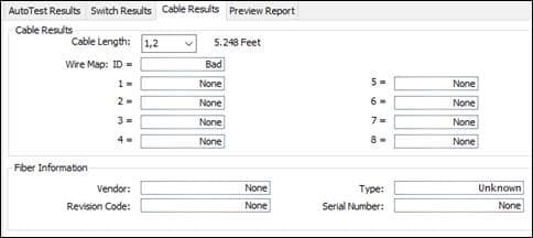 - Click on the results file name to view Report. Cable results which show “none” means the cable has no issues