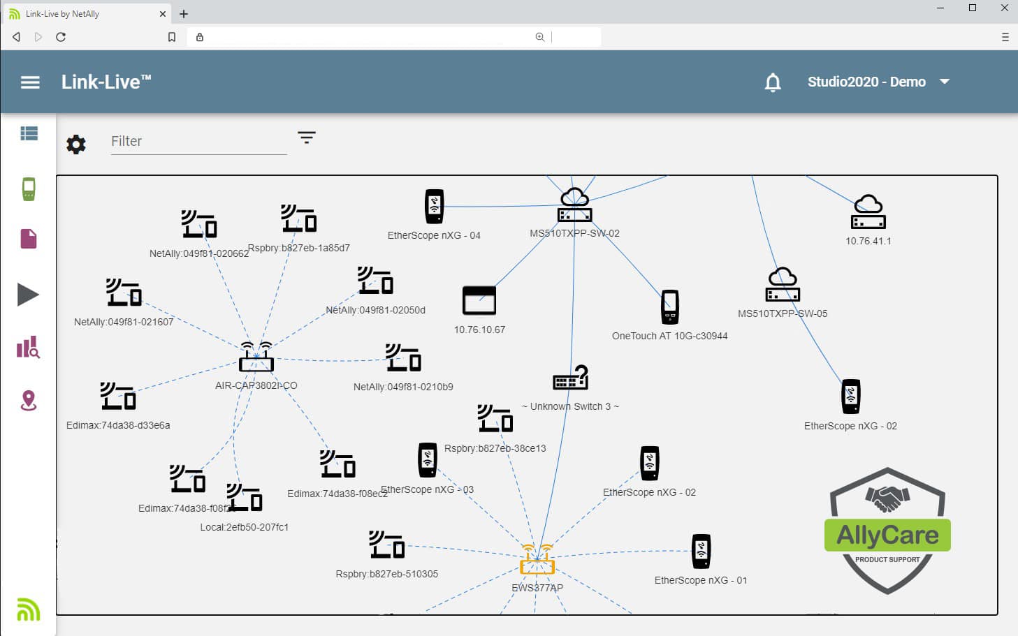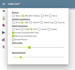NetAlly’s patented discovery engine gathers data from wired connections (via SNMP and other methods) and from the air (observing WiFi traffic) to generate comprehensive network connectivity maps.