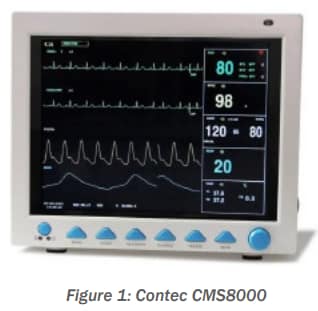 The CISA Contec CMS8000 (see Figure 1) contains a Backdoor Fact Sheet notes the backdoor exists in all firmware versions and “…can create conditions which may allow remote code execution and device modification with the ability to alter its configuration. This introduces risk to patient safety as a malfunctioning monitor could lead to improper responses to vital signs displayed by the device.”
