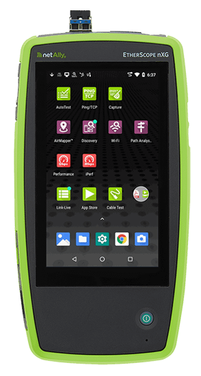 EtherScope nXG’s all-new UI combines wired and wireless data analysis and purpose-built hardware to support a broad range of technologies like line-rate 10G (over copper and fiber), NBASE-T, WiFi 5/WiFi 6, and high-power PoE (Power over Ethernet).