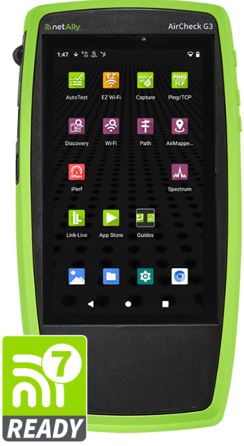 AirCheck G3 is field-ready for validating Wi-Fi 7 deployments, ensuring that new features like multi-link operation (MLO), wider channels, WPA3 security.