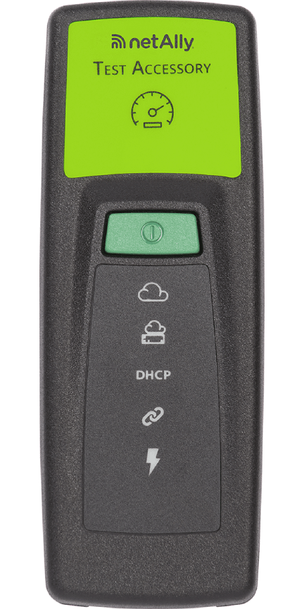 NetAlly’s Test Accessory is a pocket-sized iPerf tool that allows you to measure throughput against any part of your network. The iPerf test offers insights into TCP or UDP throughput, packet loss, and even jitter. Target with command line iPerf tests or with the handy iPerf app on NetAlly’s testers and analyzers (CyberScope™, EtherScope® nXG, AirCheck™G3, and LinkRunner® 10G.