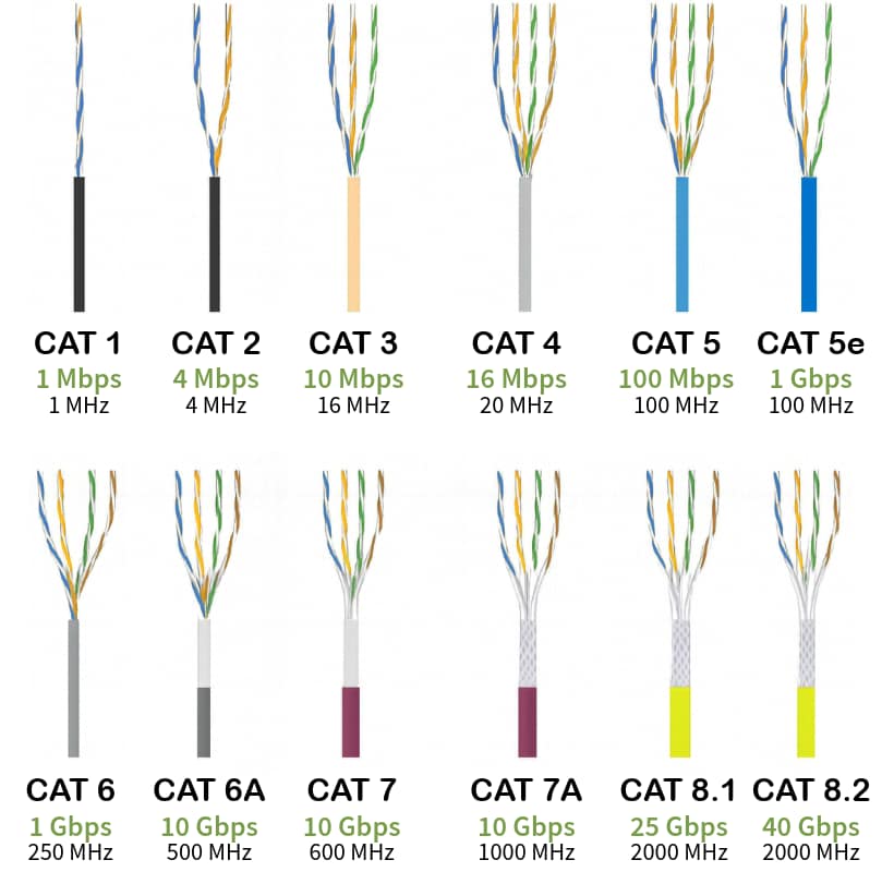 Since twisted pair dominates modern networks, let’s break down what those category numbers actually mean: