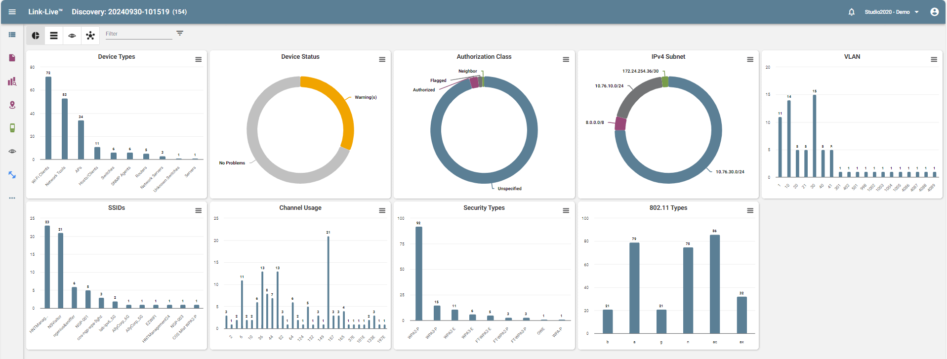 The heart of Link-Live’s ability to deliver comprehensive situational awareness is centered with its Discovery and WiFi dashboards. To see this in action, check out this short video which demonstrates the simple navigation and drill-down to resolution capabilities. For this blog, we’ll focus on key highlights.