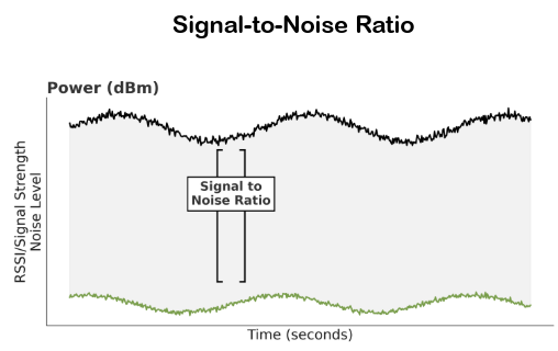 Here’s where it can get confusing: both signal strength and noise are measured in negative dBm values, but you want them to move in opposite directions: