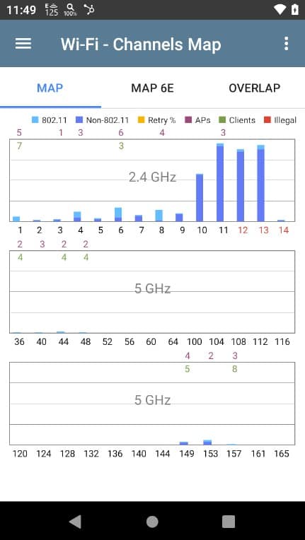 - Interference Levels: This shows how much interference is present on each channel. Lower is better.