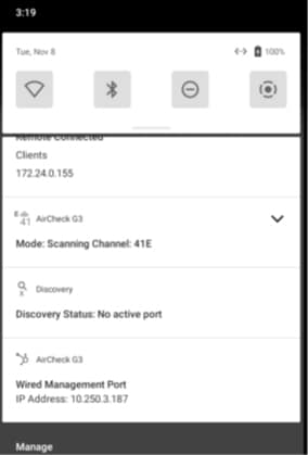 Sometimes you may find yourself needing to upload test results to Link-Live but have no access to a WiFi connection (in the middle of a no wireless zone for example). For cases like this the AirCheck G3 supports the use on any USB (Type A or Type C) to Ethernet adapter. In addition to providing a wired management connection for pushing results to Link-Live or cloud remote control operation, this also provides ‘basic’ connectivity testing as you will see Link/Traffic LEDs on the adapter, plus the AirCheck G3 will show the wired IP address.