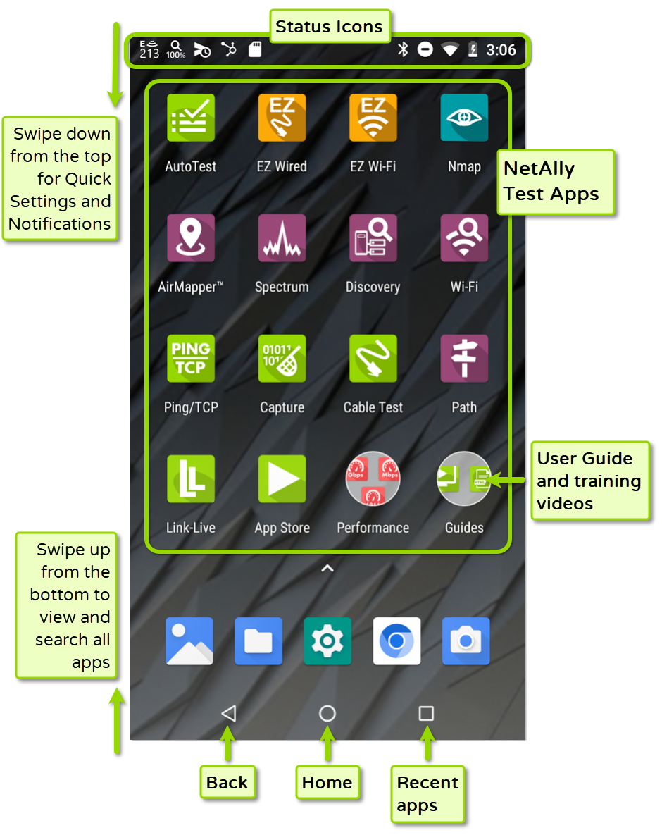 The home screen of your AllyWare tester works much like that of any modern smart device.
