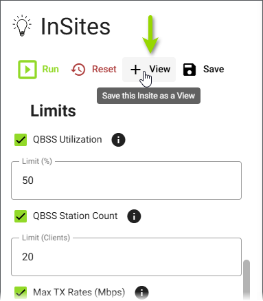Views integration: Generate a View directly from current InSites settings for use in Templates and Reports.