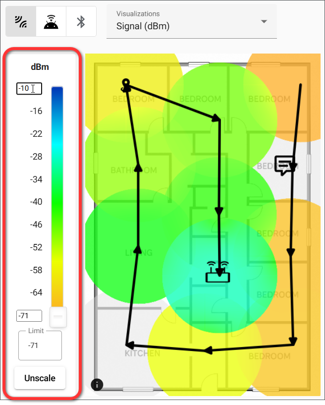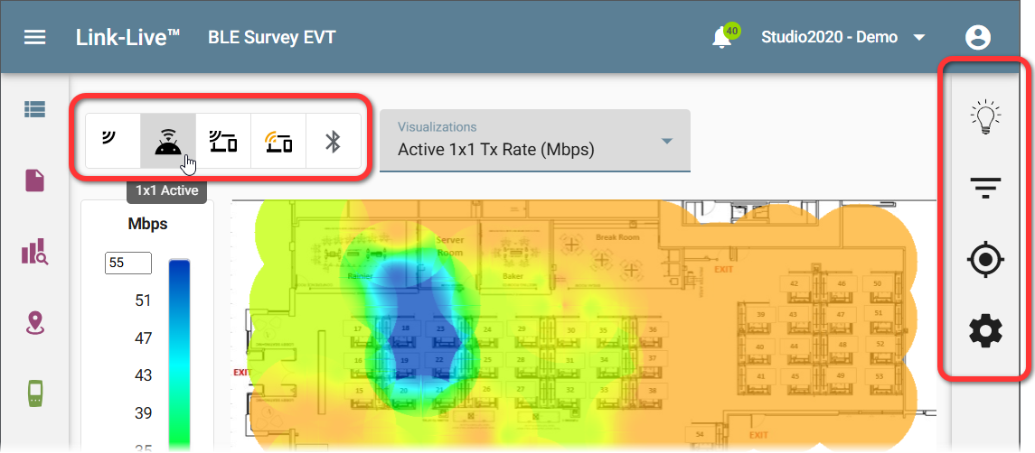 View and manage the heatmap with updated menus and a new, unified map screen, where users can filter for Active/Passive, 1x1, Client, and Bluetooth data.