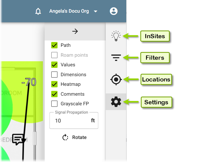 Consolidated controls: A new right-side menu provides access to InSites, Filters, Locations, and Settings from one place.