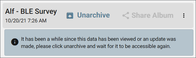 AirMapper Survey projects are auto-archived after 30 days of not being viewed or when Link-Live receives a software update. Click Unarchive to make your survey data available again.