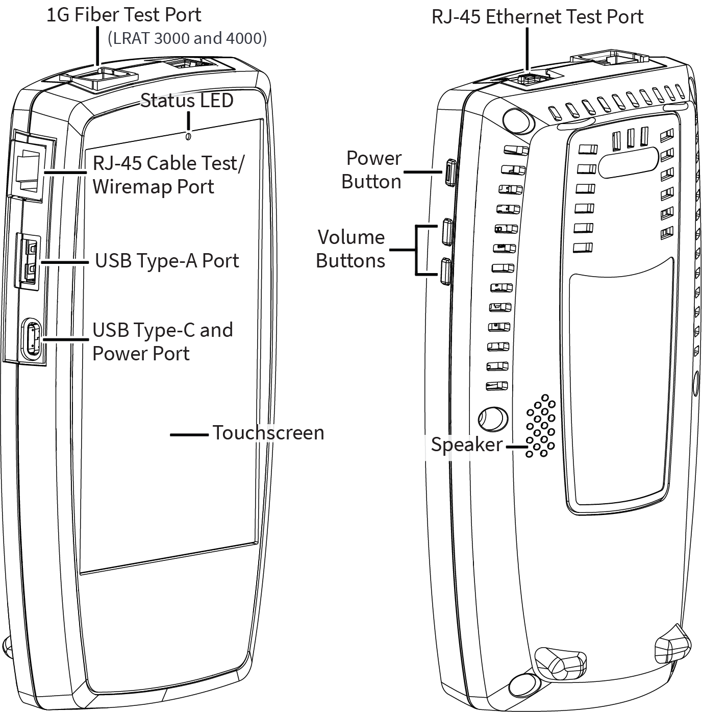 Connects to a USB Type-C connector for file transfer and to charge tester with the included AC adapter |