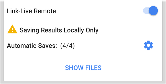 If Save Locally Only is enabled in the General Settings, the Link-Live app instead automatically saves new test data to the file system. Automatic Save options are shown in the Link-Live app instead of Automatic Uploads.