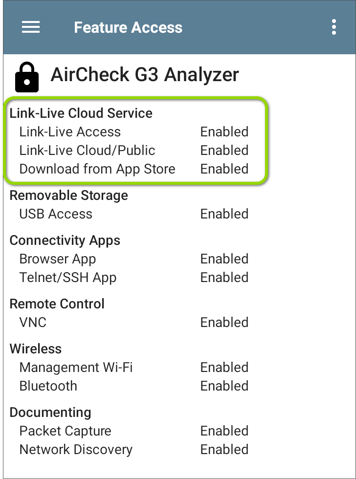 To better avoid accidental activation of Link-Live Private settings, Link-Live security settings have been moved to the Feature Access screen.