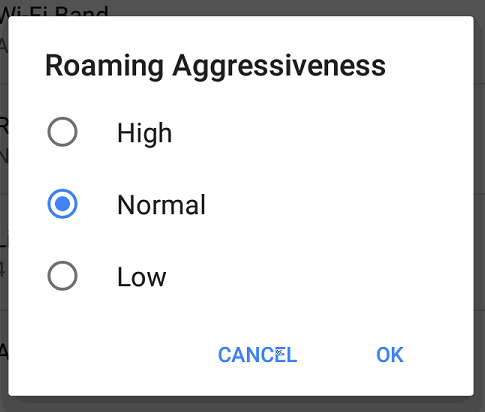 Roaming Aggressiveness Setting for Wi-Fi Profiles